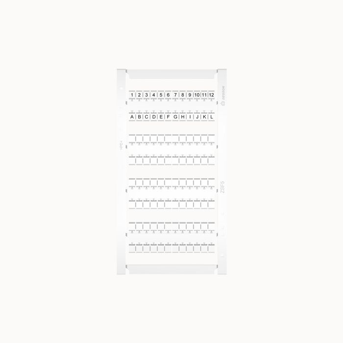 Маркировочные пластины для клемм шириной 5,2мм, пустые, кол-во маркировочных полей: 96, размер маркировочного поля: 4,6х10,5мм, печать: принтер PTT, установка: глубокий паз.
