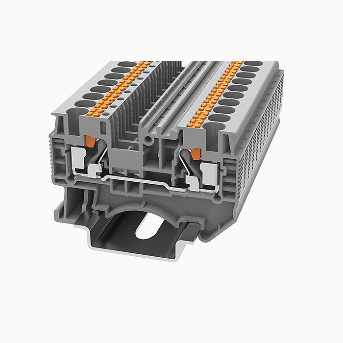 Клемма проходная пружинная Push-in 4мм2 оранжевая, ширина 6,2мм, номинальный ток 32А