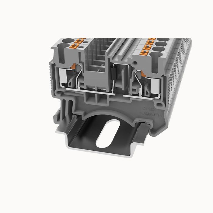 Клемма двухуровневая пружинная Push-in 1,5мм2, серая, ширина 3,5мм, номинальный ток 16А