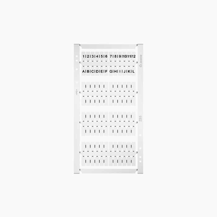 Маркировочные пластины для клемм шириной 5,2мм, пустые, кол-во маркировочных полей: 96, размер маркировочного поля: 4,6х10,5мм, печать: принтер PTT, установка: глубокий паз.