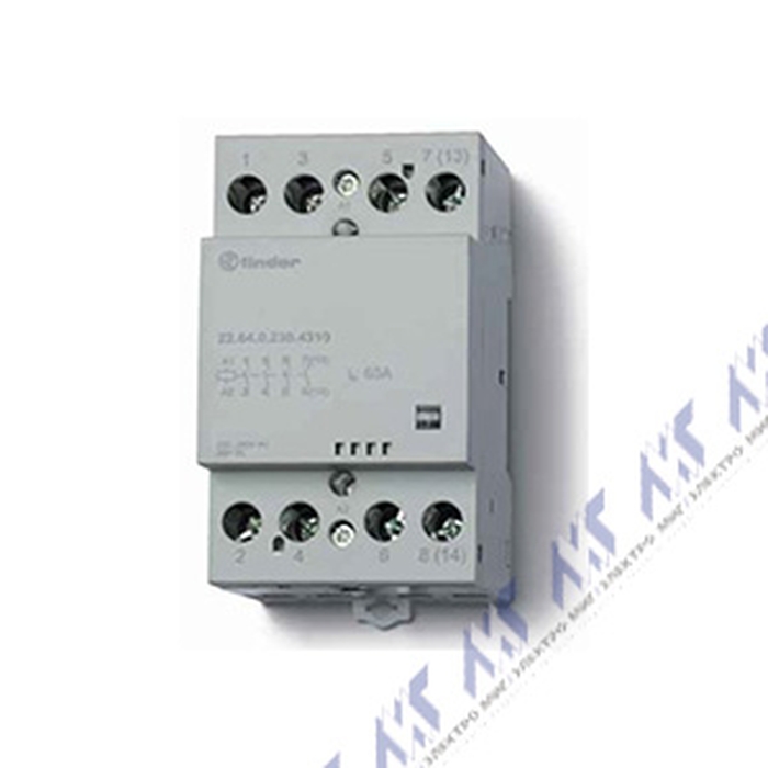 Модульный контактор; 2NO 25А; контакты AgSnO2; катушка 24В АС/DC; ширина 17.5мм; степень защиты IP20; опции: переключатель Авто-Вкл-Выкл + мех.индикатор + LED