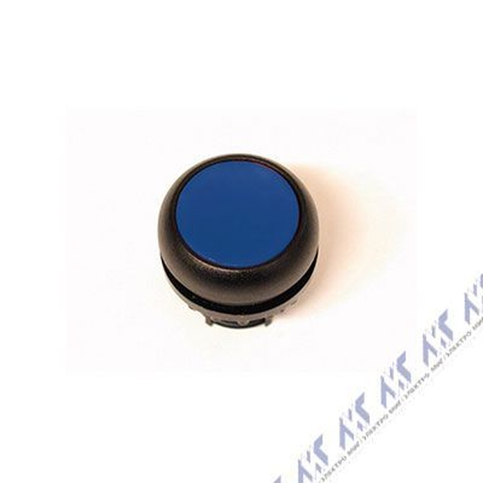 Головка кнопки без фиксации, цвет синий, черное лицевое кольцо