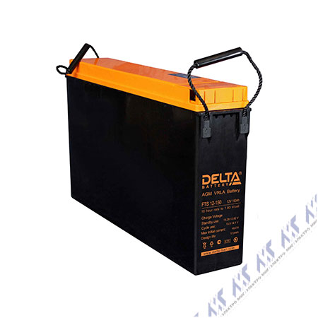 Аккумуляторная батарея Delta FTS 12-150, 12В, 150Ач. Разработана для систем электропитания мобильной и стационарной связи. Имеет повышенную удельную емкость при небольших габаритах. Срок службы 12 лет.