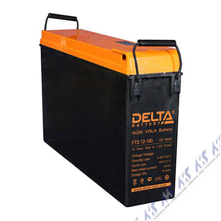 Аккумуляторная батарея Delta FTS 12-180, 12В, 180Ач. Разработана для систем электропитания мобильной и стационарной связи. Имеет повышенную удельную емкость при небольших габаритах. Срок службы 12 лет.
