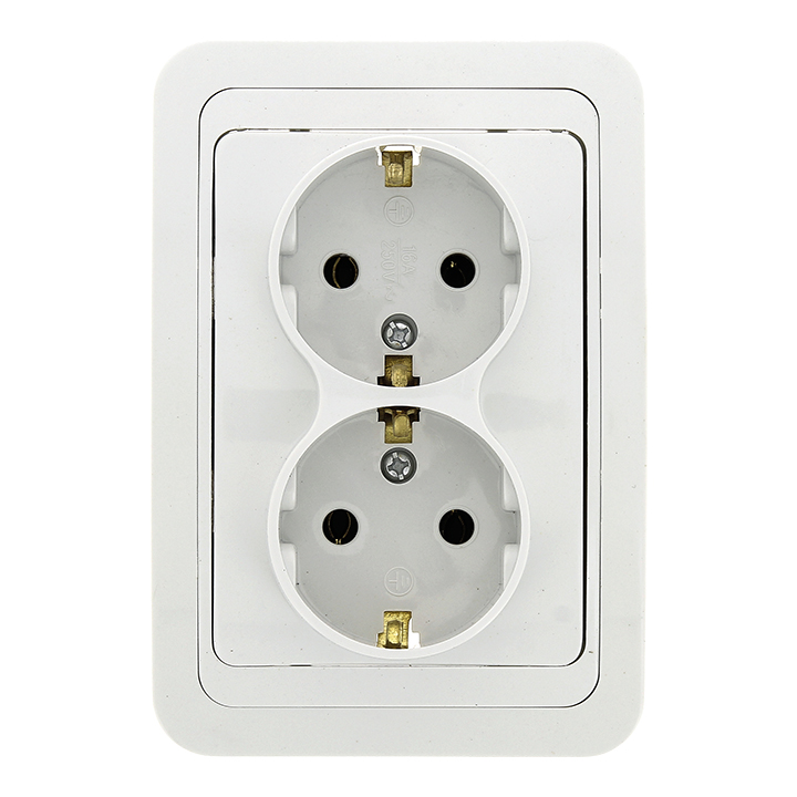 Лондон Розетка 2-местная с заземлением 16А белая EKF