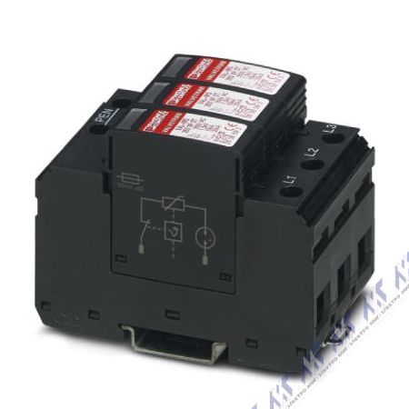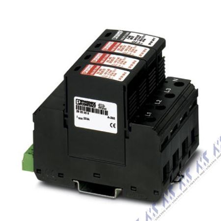 Вставной комбинированный разрядник для защиты от грозовых и импульсных перенапряжений, соотв. типу 1+2 / класс I+II, для 3-фазных сетей электропитания, с совмещенными проводниками N и PE (L1, L2, L3, PEN).