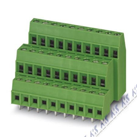 Клеммы для печатного монтажа, Номинальный ток: 13,5 А, Номинальное напряжение: 240 В, Размер шага: 3,5 мм, Полюсов: 3, Тип подключения: Пружинные зажимы, Монтаж: пайка, Направление подключения, проводник / печатная плата: 45 °, Цвет: зеленый.Упаковка 50 шт.