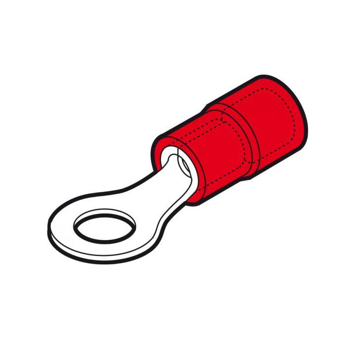 Кольцевой изолированный (ПВХ) кабельный наконечник под винт, сечение 0,25-1,5 кв. мм., М6, цвет красный