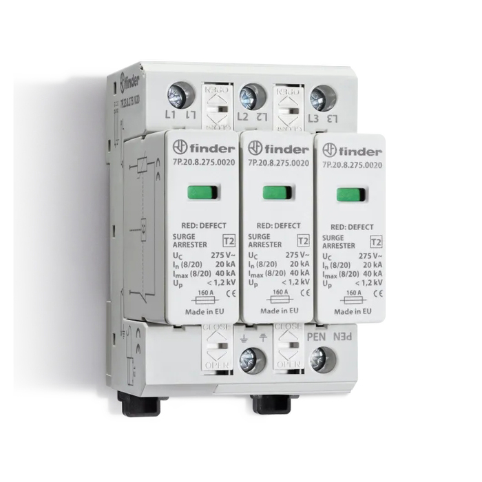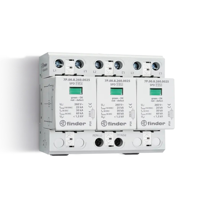 Устройство защиты от импульсных перенапряжений УЗИП тип 1+2 (3 варистор/искровой разрядник); модульный, ширина 108мм; степень защиты IP20