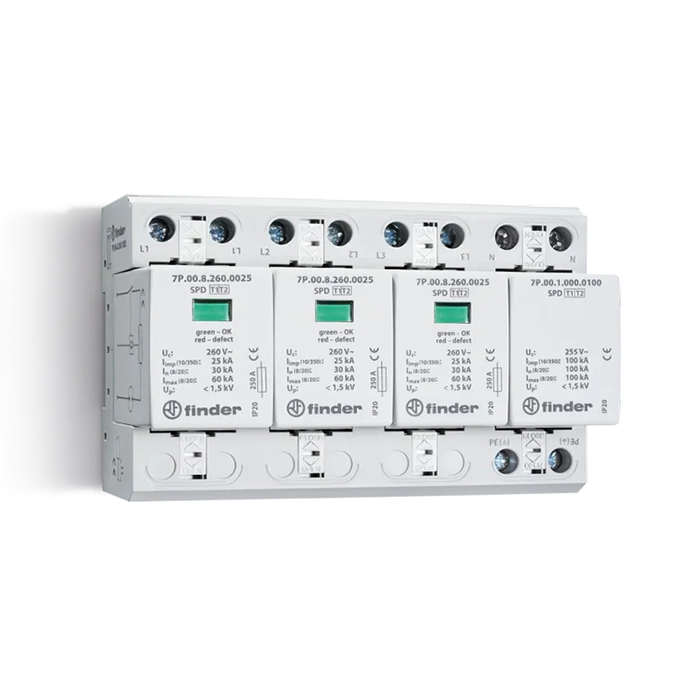 Устройство защиты от импульсных перенапряжений УЗИП тип 1+2 (4 варистор/искровой разрядник); модульный, ширина 144мм; степень защиты IP20