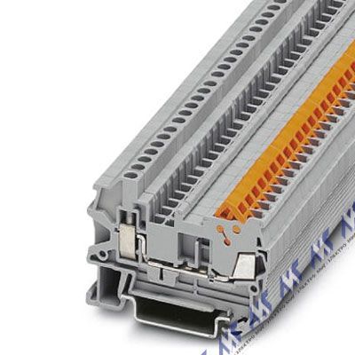 Двухъярусные клеммы, с потенциальным разъемом, Тип подключения: Зажимы Push-in, Сечение: 0,14 кв.мм - 1,5 кв.мм, AWG: 26 - 14, Ширина: 3,5 мм, Цвет: cерый, Тип монтажа: NS 35/7,5, NS 35/15