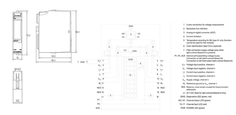 SIMATIC ET 200SP, БАЗОВЫЙ БЛОК BU15-P16+A0+2B, ТИП A0, ВТЫЧНЫЕ КЛЕММЫ, БЕЗ ДОП. КЛЕММ (AUX), ПОДКЛЮЧЕНИЕ К СУЩ. НАГРУЗОЧНОЙ ГРУППЕ (БАЗОВОГО БЛОКА СЛЕВА) Ш Х В: 15MMX117MM