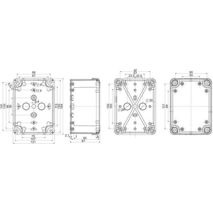 ПЛАСТИКОВАЯ КОРОБКА 164X121X87 ABS