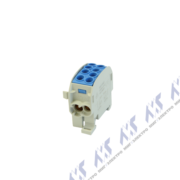Разветвительная клемма 35 кв.мм, Вход 2 x 35 кв.мм, Выход 2 x 25 кв.мм в соответствии с DIN VDE 0603-2 с защелками для установки в горизонтальном и с адаптером в вертикальном положение. 1 Секция с 4 Местоподключениями (Исполнение "N").