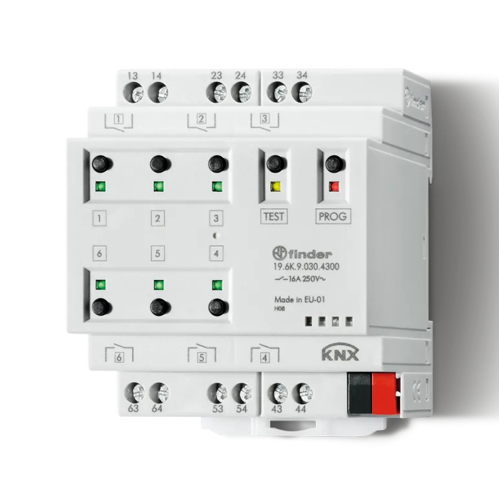 Актуатор KNX; выход 6х16 А; контакты AgSnO2; монтаж на рейку 35мм; питание KNX 30B DC; ширина 70мм; степень защиты IP20