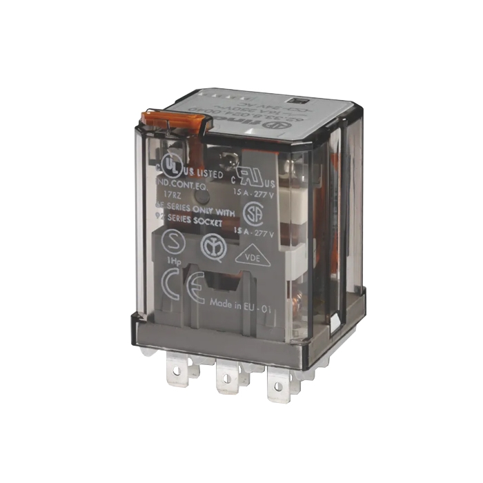 Силовое электромеханическое реле; монтаж в розетку или наконечники Faston 187 (4.8х0.5мм); 3CO 16A; контакты AgCdO; катушка 400В AC; степень защиты RTI; опции: мех.индикатор