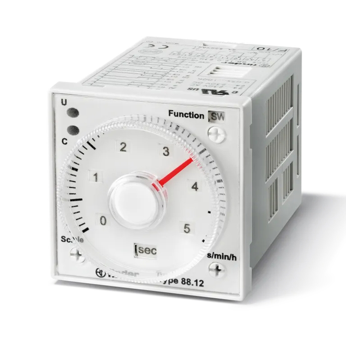Таймер мультифункциональный (AI, DI, GI, SW, BE, CE, DE), функции SET, RESET; монтаж на панель или в розетку; 11-штырьковый разъем; питание 24…230В АС/DC; 2CO 8A; регулировка времени 0.05с…100ч; степень защиты IP40