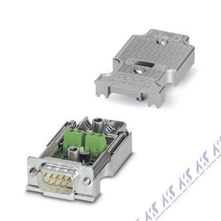 Штекер D-SUB, 9-контактный, контактный штырек, подвод кабеля под углом 35°, шинная система: PROFIBUS DP до 12 Мбит/с с гнездовой частью PG-D-SUB для подключения программирующего устройства, нагрузочное сопротивление подключается посредством ползункового переключателя, расположение выводов: 3, 5, 6, 8; винтовые клеммы