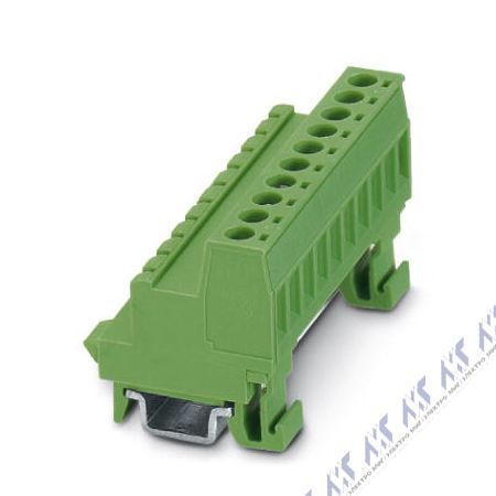 Вилочная часть, номинальный ток: 12 A, расчетное напряжение (III/2): 320 В, полюсов: 10, размер шага: 5 мм, тип подключения: Винтовой зажим с натяжной гильзой, Цвет: зеленый, поверхность контакта: олово, монтаж: на монтажную рейку
