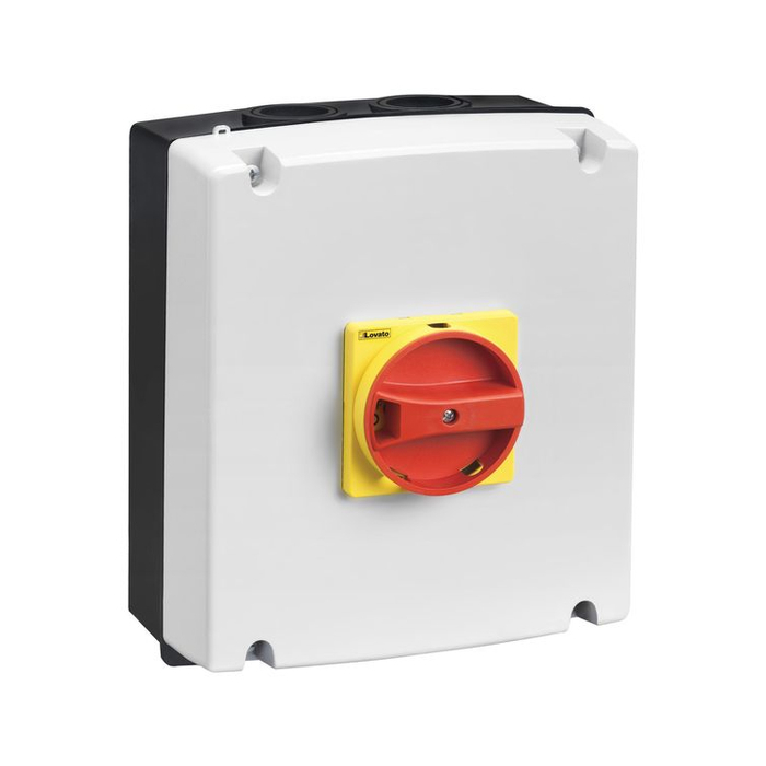 Корпус пластиковый для установки выключателей-разъединителей GA...A… (монтаж на DIN-рейку) 16-40A, поворотная рукоять, красно-желтая, удлинительная ось в комплекте Производитель - Lovato Electric, серия GA.