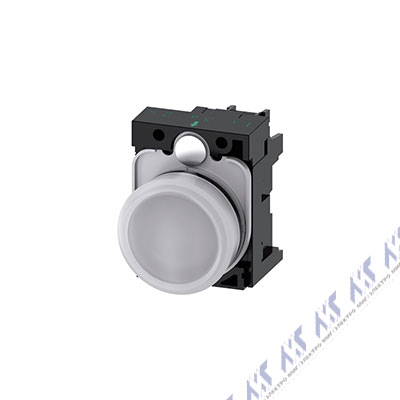 INDICATOR LIGHT, 22MM, ROUND, PLASTIC, WHITE, SMOOTH LENS, WITH HOLDER, LED MODULE, WITH INTEGRATED LED 24V AC/DC, SPRING-TYPE TERMINAL, Z = 50X PACK