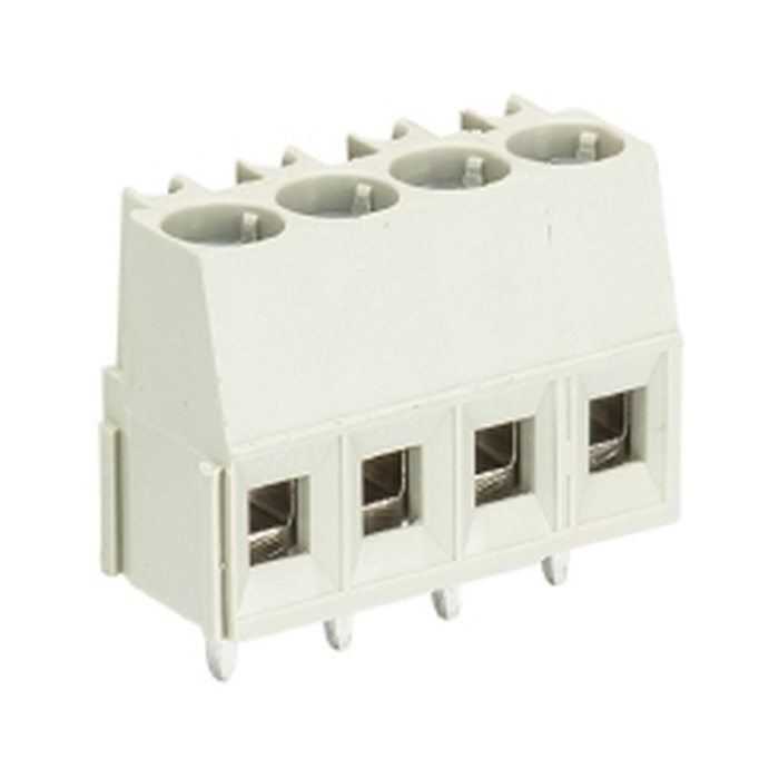 Клемма горизонтальный подвод кабеля, на плату, шаг: 5.0 мм, 4 полюса, фиксация провода винтовая, исполнение: с маркировкой, 300V, 10A, цвет: серый
