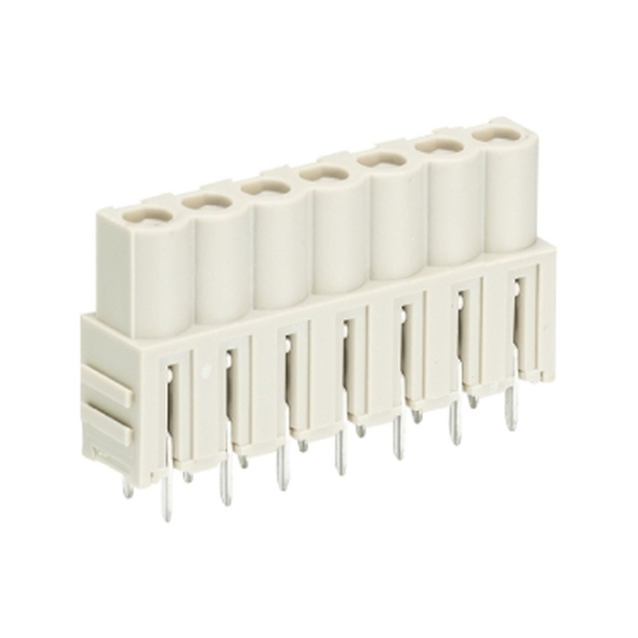 Розеточный разъем, вертикальный, на кабель, шаг: 5.08 мм, 7 полюсов, фиксация провода пайкой, исполнение: без маркировки, 690V, 12А, цвет: серый