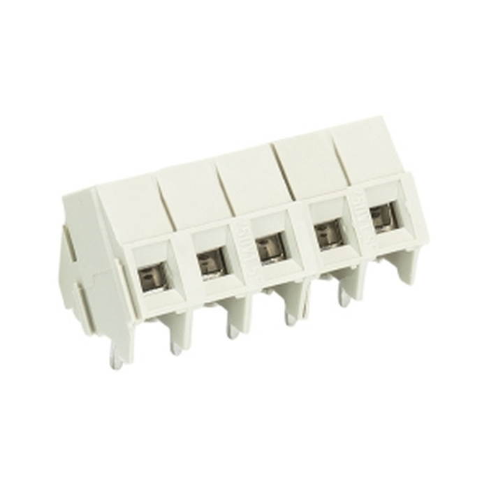 Клемма, подвод кабеля 35 град., на плату, шаг: 5.0 мм, 5 полюсов, фиксация провода винтовая, исполнение: с маркировкой, 300V, 10A, цвет: серый