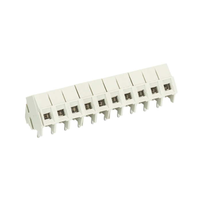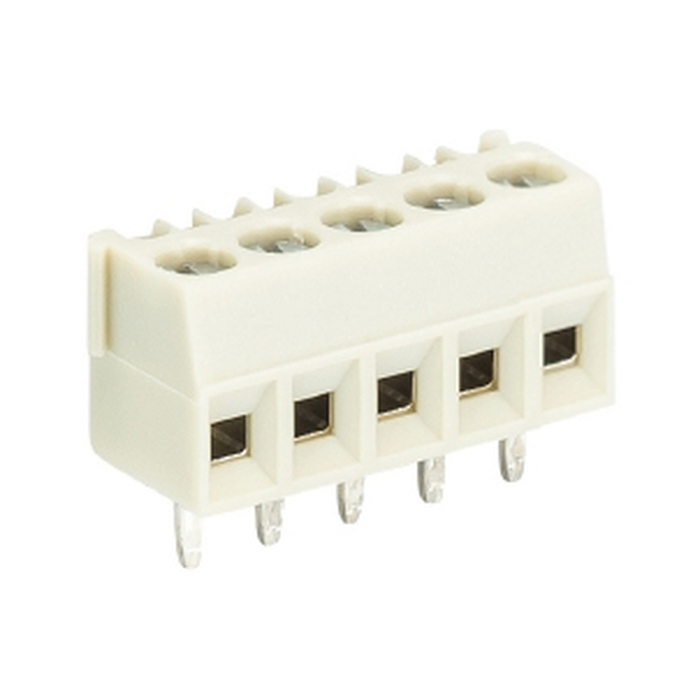 Клемма горизонтальный подвод кабеля, на плату, шаг: 3.5 мм, 5 полюсов, фиксация провода винтовая, исполнение: без маркировки, 300V, 10A, цвет: серый