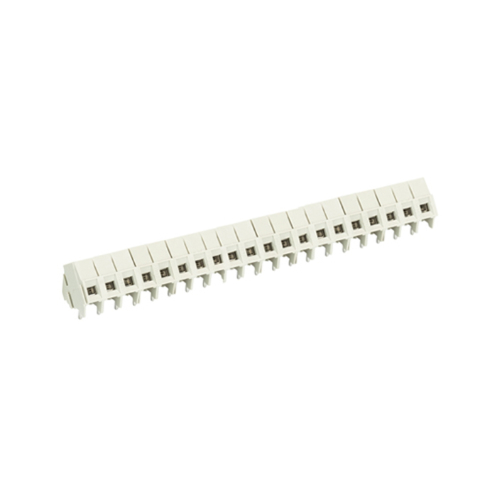 Клемма, подвод кабеля 35 град., на плату, шаг: 5.0 мм, 20 полюсов, фиксация провода винтовая, исполнение: с маркировкой, 300V, 10A, цвет: серый