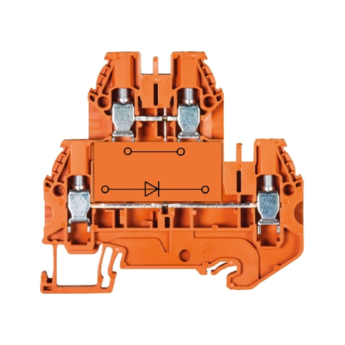 Этажная функциональная клемма, 2 этажа, тип фиксации провода: винтовой, номинальное сечение: 4 мм кв., ширина: 6 мм, цвет: оранжевый, тип монтажа: DIN35