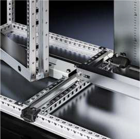Секционные монтажные панели быстро и удобно обеспечивают дополнительные монтажные поверхности на всех уровнях в шкафу. При этом возможно использование в качестве приборной полки и крепление на шарнирах, чтобы оставался доступ к монтажной поверхности сзади. Возможен даже монтаж на трубчатую раму двери. Крепление с отверстиями в форме замочной скважины обеспечивают быстрый и безопасный монтаж путем навешивания и крепления.