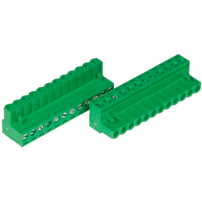 Клеммник разъёмный на кабель. Номинальное напряжение: 300V, номинальный ток: 15A, контактов: 12, шаг: 5.08mm, сечение провода: 0.2~2.5mm², тип подключения: Screw connection, цвет: зеленый