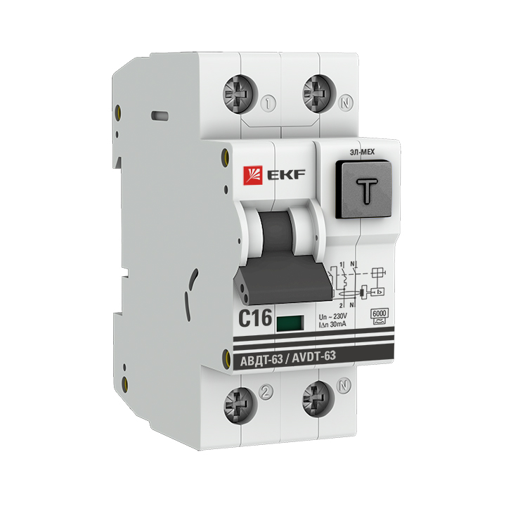 Наименование: Диф. автомат 16А 30мА х-ка C эл-мех тип A 6кА АВДТ-63 EKF PROxima