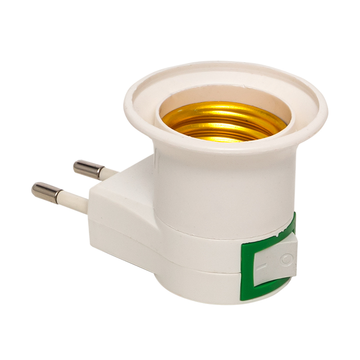 Переходник вилка-Е27 с выкл. бел. EKF