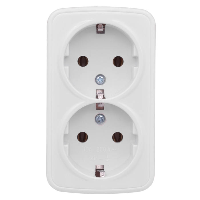 Наименование: Минск Розетка 2-местная ОП 16А с заземлением белая EKF