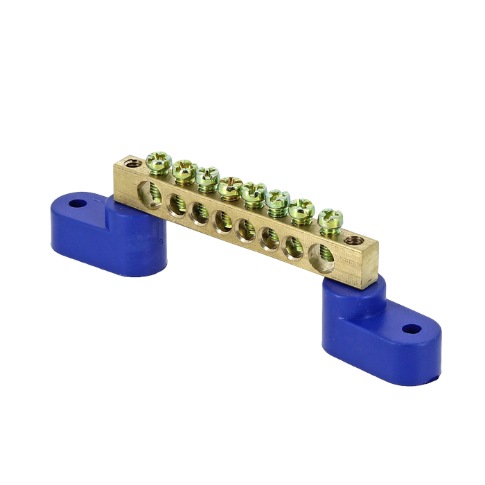 Наименование: Шина "0" N (6x9мм) 8 отв. латунь 2 синих угловых изолятора EKF