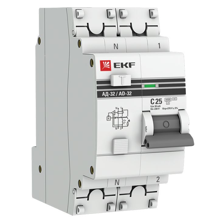 Наименование: АД-32 1P+N 25А (С) 30мА тип (АС) эл. 4,5кА EKF PROxima