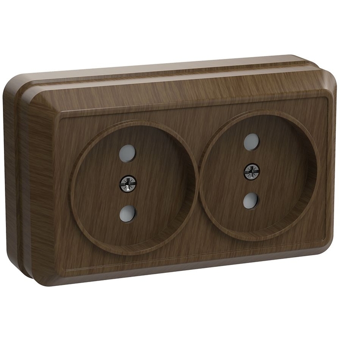 Розетка 2-местная для открытой установки РС22-2-ОД без заземляющего контакта 10А ОКТАВА дуб IEK
