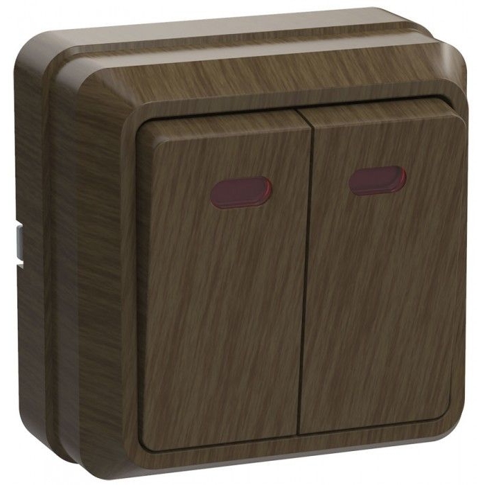 Выключатель 2-клавишный для открытой установки с индикацией ВС20-2-1-ОД 10А ОКТАВА дуб IEK