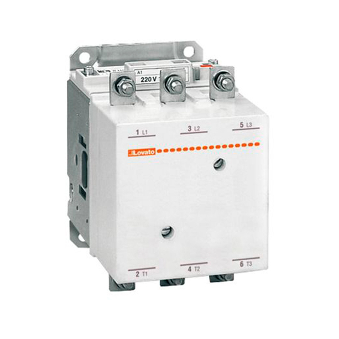 Трехполюсный контактор для управления двигателем, индуктивными нагрузками (AC-3), 265А / 140,0кВт (400В), доп. контакты - отсутствуют, управляющее напряжение 220-240В (АС/DC), категория применения АС-3. Контактные зажимы – болтовое соединение. Производитель - Lovato Electric, серия B.