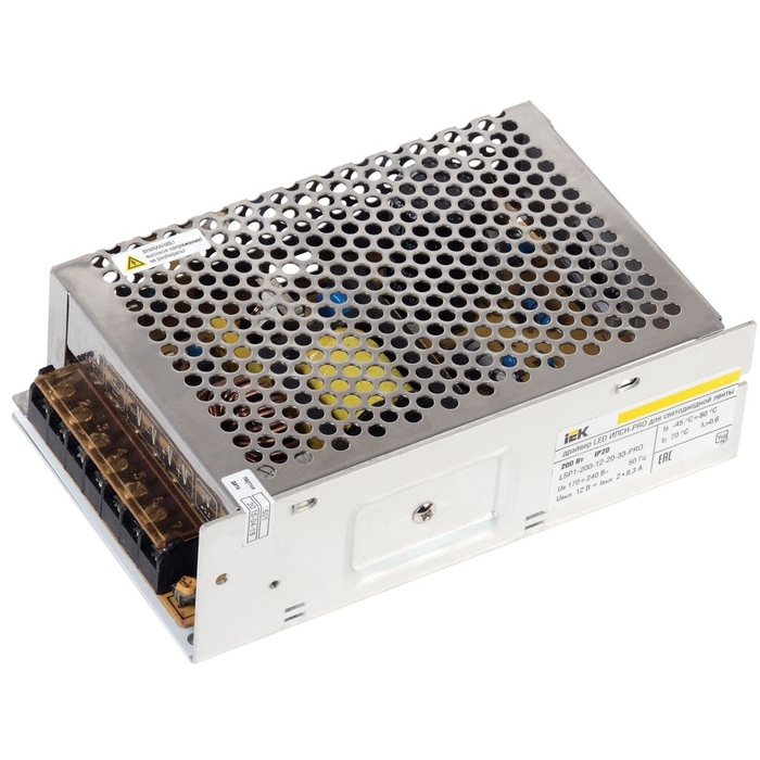 Драйвер LED ИПСН-PRO 200Вт 12В блок-клеммы IP20 IEK