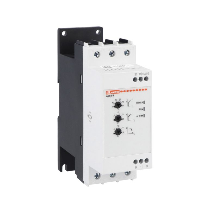 Устройство плавного пуска для трехфазных двигателей, 25А/11кВт (400В), управляющее напряжение 100-240В (АС), настройка потенциометрами. Производитель - Lovato Electric, серия ADXN.