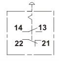 Кнопка красная с обозначением "0", 1 нормально закрытый контакт. |