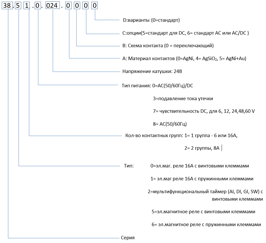 Формирование заказного кода электромагнитных реле серии 38