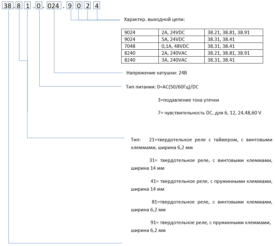 Формирование заказного кода твердотельных реле серии 38