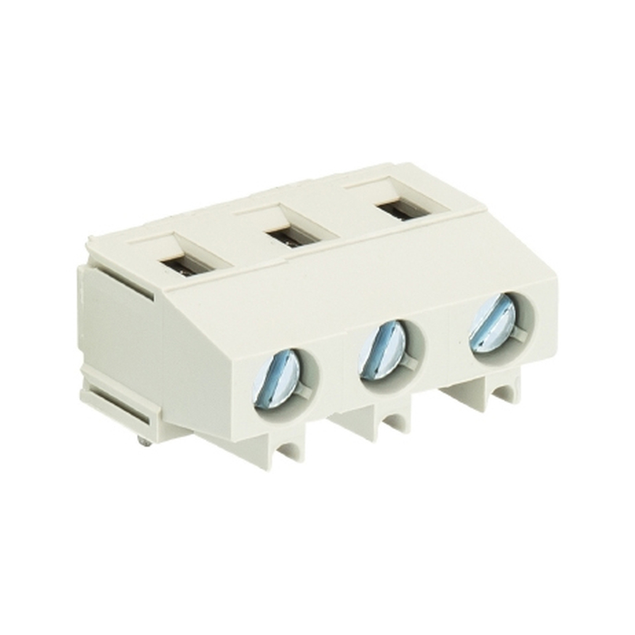 Клемма горизонтальный подвод кабеля, на плату, шаг: 5.0 мм, 3 полюса, фиксация провода пружинная, исполнение: без маркировки, 300V, 16А, цвет: серый