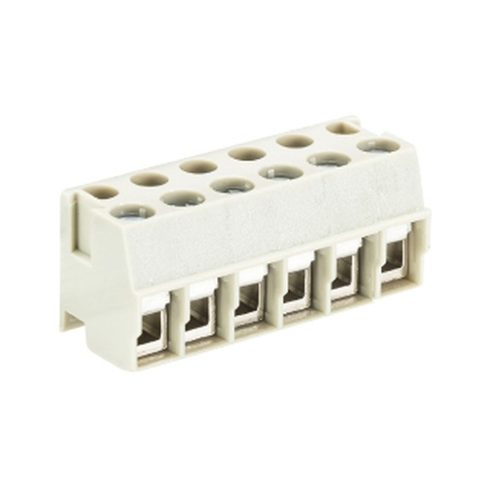 Клемма горизонтальный подвод кабеля, на плату, шаг: 5.0 мм, 6 полюсов, фиксация провода винтовая, исполнение: без маркировки, 200V, 8А, цвет: серый