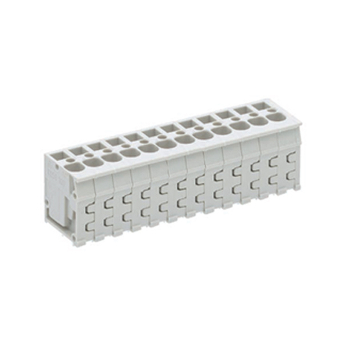 Клемма вертикальный подвод кабеля, на плату, шаг: 5.0 мм, 12 полюсов, фиксация провода пружинная, исполнение: без маркировки, 300V, 16А, цвет: серый