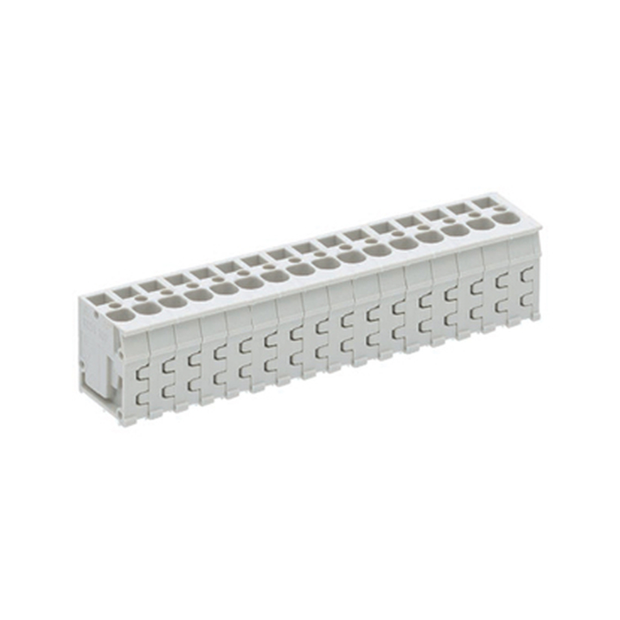 Клемма горизонтальный подвод кабеля, на плату, шаг: 5.0 мм, 13 полюсов, фиксация провода винтовая, исполнение: без маркировки, 300V, 16А, цвет: серый